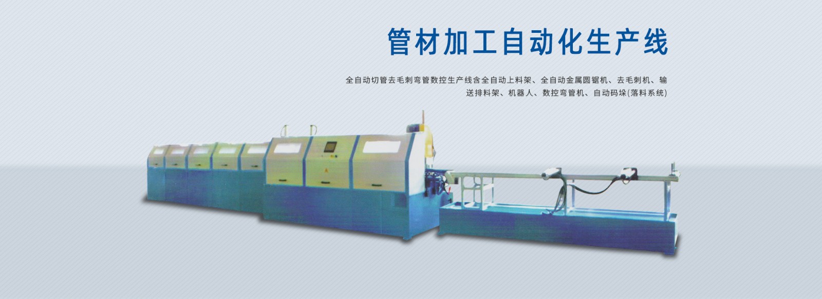 公司為適應市場需求,針對汽車工業、造船行業、鍋爐行業、健身器材、自行車、電動車、摩托車、家具行業、防盜門窗等專業生產廠家的需要,公司在延用臺灣技術的基礎上,近幾年來不斷引進國外的專業技術和管理方法,設計制造出國內優良的金屬圓鋸機、管端成型機、單頭液壓彎管機、雙頭液壓彎管機、CNC全自動彎管機、CNC全自動切割機、倒角機等系列機械。同時公司可根據用戶使用與現場安裝的需要設計,制造特殊規格的上述設備,以及各種非標機械產品。公司以專業的技術,物有所值的價格,使產品暢銷國內外。